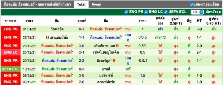 เมื่อมีข้อสงสงสัยก็ไปดูสถิติประกอบ จะเห็นว่า สเปอร์ส นั้นเล่นมา 7 เกม ไม่มีแพ้เลย ส่วนเกมส์ที่แพ้ แรนส์ 3-0 มันถูกปรับแพ้ครับ เพราะมีนักเตะติดโควิดเยอะจะไปแข่งไม่ได้ ซึ่งเมื่อดูสถิติแบบนี้ ก็พอจะเข้าใจได้ว่าทำไม เชลซี ถึงต่อแค่ ครึ่งลูก ได้ค่าน้ำเต็ม